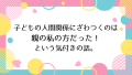 子供と過ごした時間は、きっとかけがえのないものになると信じて